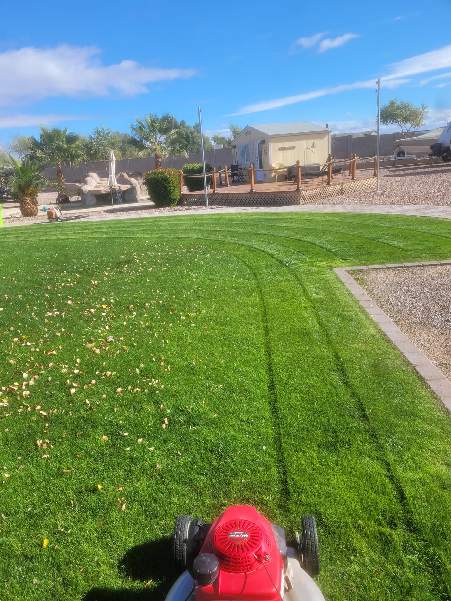 We provide full-service landscaping including hardscaping (pavers, travertine, retaining walls, fire pits, pergolas, BBQ grills), tree trimming and removal, irrigation installation and repair, sod and artificial turf installation, gravel installation, planting, demolition, site prep, and ongoing maintenance plans.
